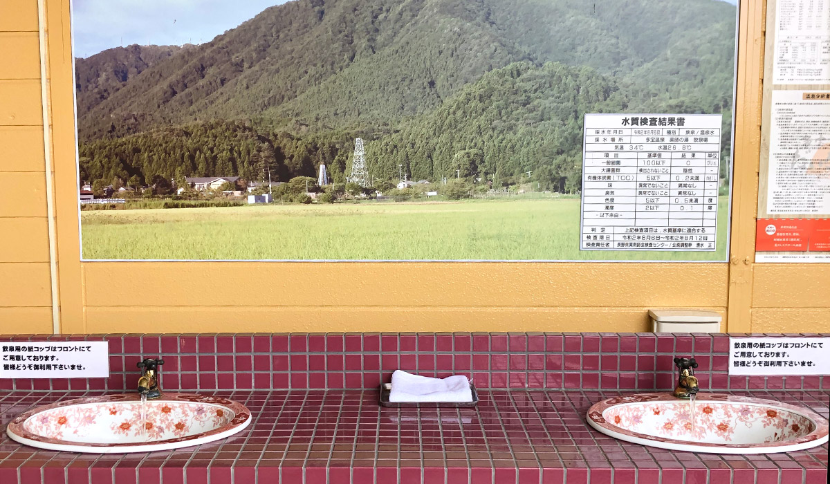 文字の通り温泉を飲むこと。胃腸や肝臓などに温泉の効能が直接作用する効果と、入浴と同じように全身に作用する効果の相乗効果が期待できる、健康法のひとつです。源泉からの距離や飲泉所の設置など、条件を満たしたものだけが飲用として認められています。