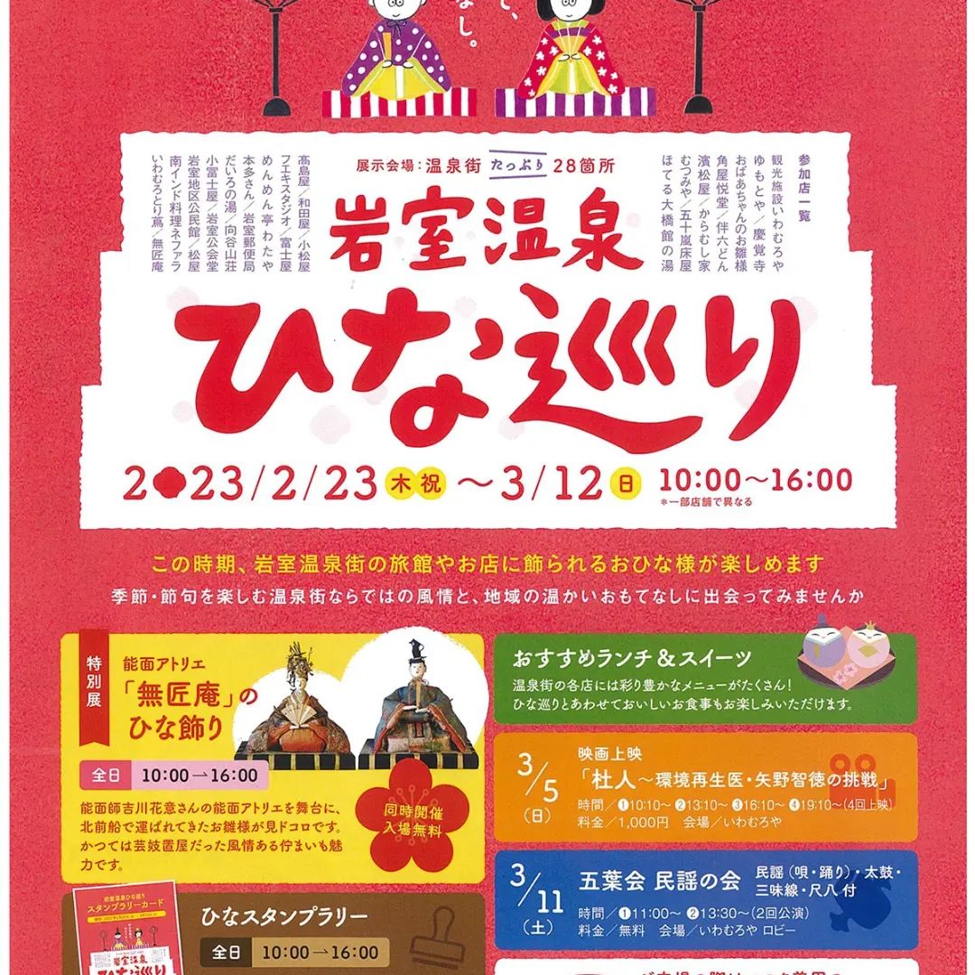 この時期、岩室温泉街の旅館やお店28か所に飾られるおひな様が楽しめます。