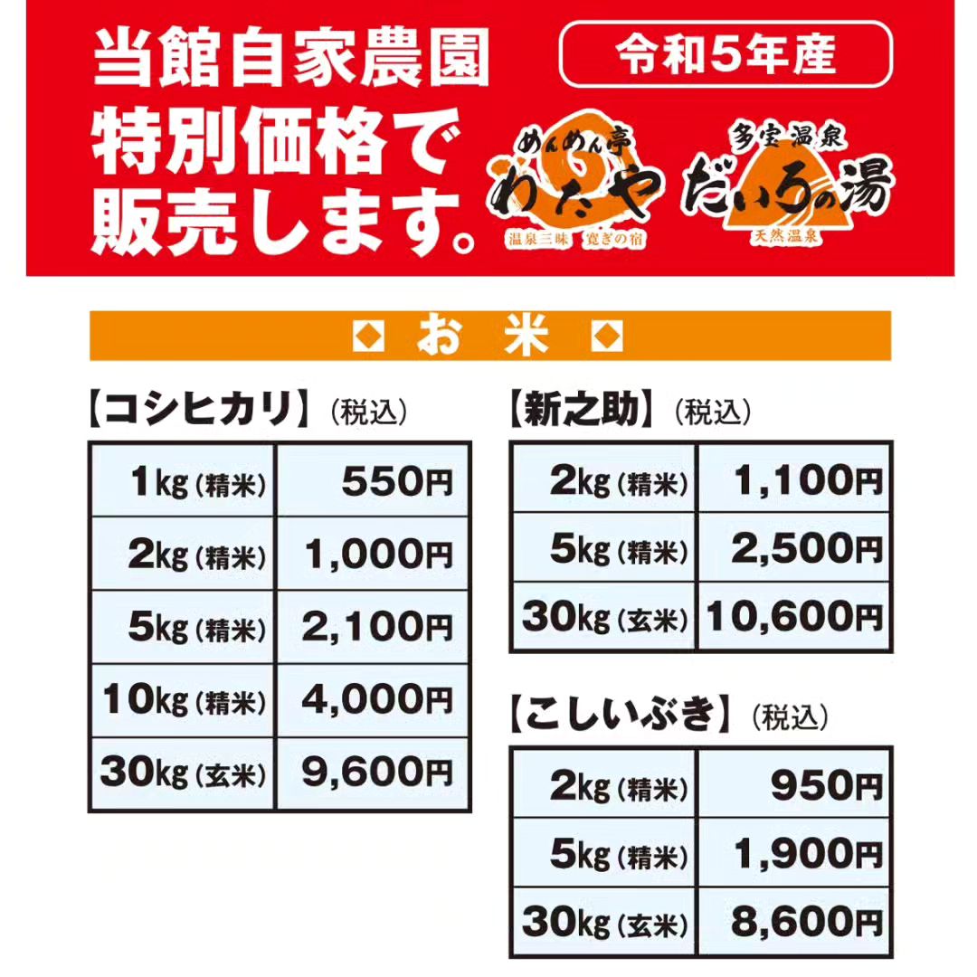 だいろの湯の自家農園では、従来からの新潟のブランド米であるコシヒカリとこがねもち以外にも各種栽培しております。